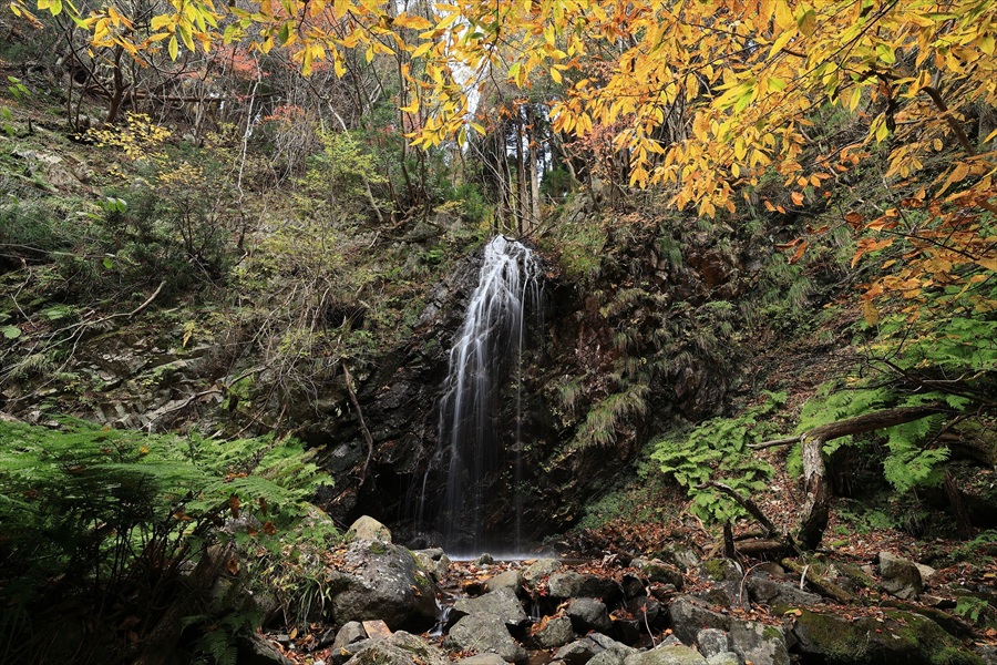 | 滝谷の滝 | C | 2 | 影にある滝谷の滝。雄滝(上の滝)落差15mと雌滝(下の滝)落差15mからなる。雄滝は2段でコケが美しく、3段の雌滝は上の2段が特に綺麗。どちらも美しい滝姿だ。 | ||