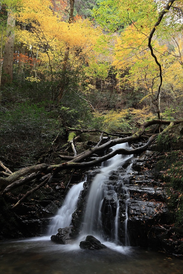 | 黄谷の滝 | D | 2 | おうたにのたき。何故か一番上に「滝壺」(甌穴)。その下に落差10mの上の滝、さらに落差10mの下の滝と続いている。そしてその下流にも小滝が続いていて、枯葉のグルグルが撮れそうなところがたくさんあった。水も綺麗で好印象。 | ||